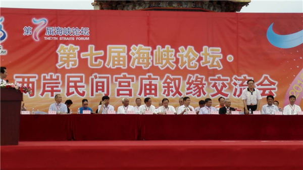 第七届海峡论坛·两岸民间宫庙叙缘交流会14日在厦门举行,两岸近300家宫庙代表汇聚一堂,共叙法缘。泉州北石文兴宫董事会负责人代表泉州文兴宫参加了这次盛会,与两岸诸多大德交流畅叙。