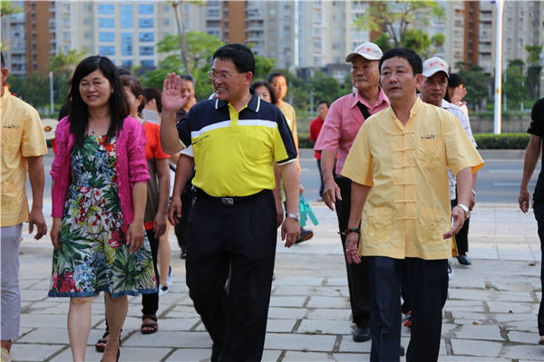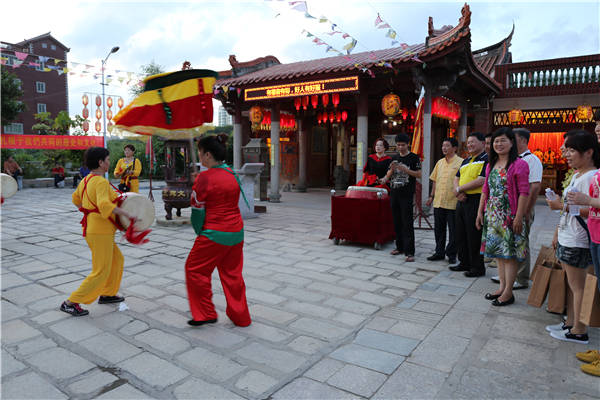 访问的最后,邱建富先生与文兴宫董事会董事长伍文辉先生分别互赠了礼物,合影留恋,并观看了文兴花鼓凉伞队的表演。陪同邱建富先生有邱建富先生夫人以及多次来到文兴宫的彰化市市民代表林深山先生。泉州北石文兴宫董事会主要成员参与接待了邱建富先生一行。
