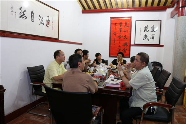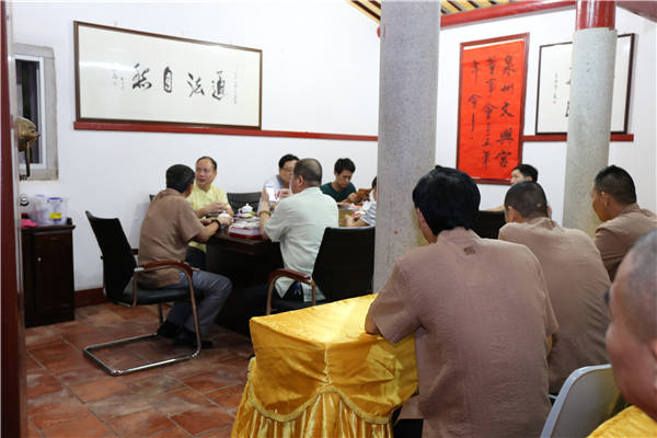 文兴宫董事会诸位成员与郭处长交流了近一段时间文兴宫建设与发展的简况,汇报了对台交流、文物保护等重要问题的进展,郭处长认真的听取了汇报,对文兴宫现阶段取得的成绩表示赞赏,并对接下去的工作提出了更高的要求。