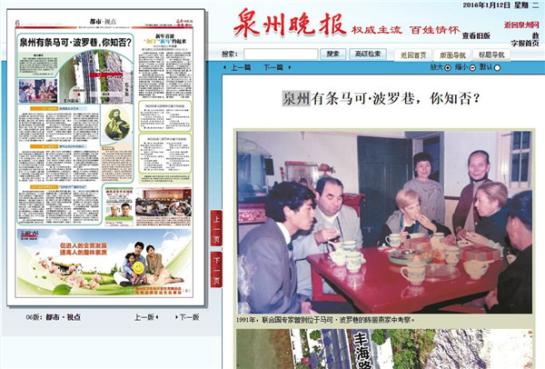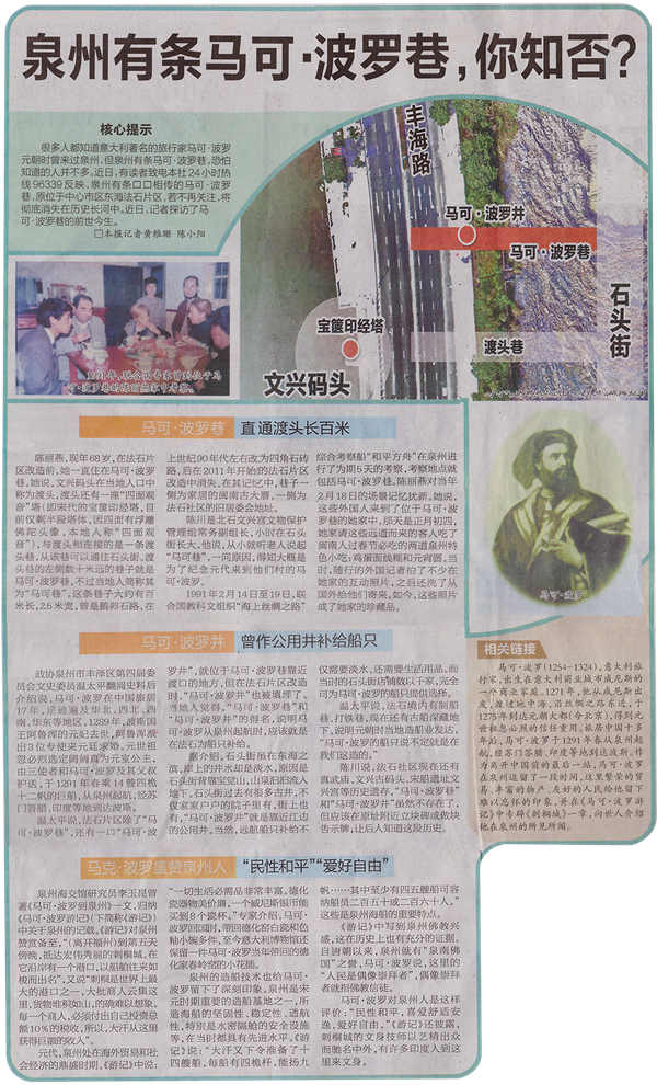 《泉州晚报》大篇幅报道文兴境马可·波罗巷史迹