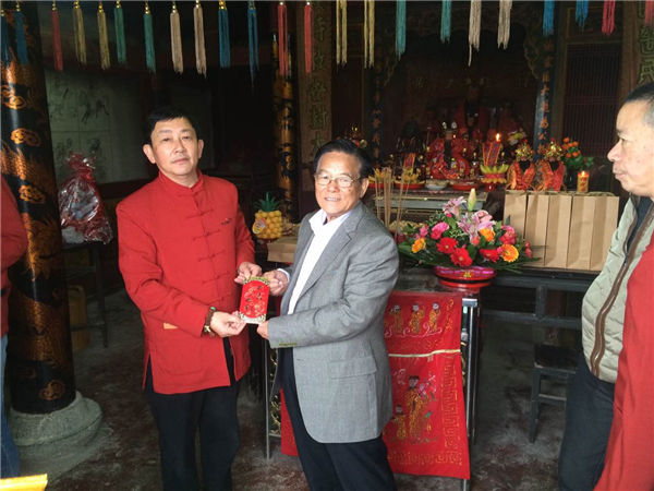 文兴亯董事会成员在保生大帝面前举行了隆重而简朴团拜仪式献上了鲜花、水果、金帛,祝愿两亯香火鼎盛!神威显赫!也愿大帝信众阖家幸福安康!更还了文兴弟了一几代人的心愿!更与王湖殿诸位大德真诚交流为弘扬保生文化深入沟通、交流取得了预期的效果双方表示以后将多多交流、来住。文兴亯董事会还热情邀请玉湖殿各位信众于农历丙申年三月十一日到文兴宫参加泉州保生大帝研究会第十八届香会。