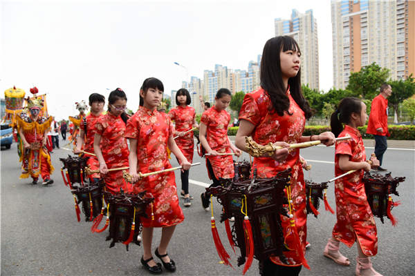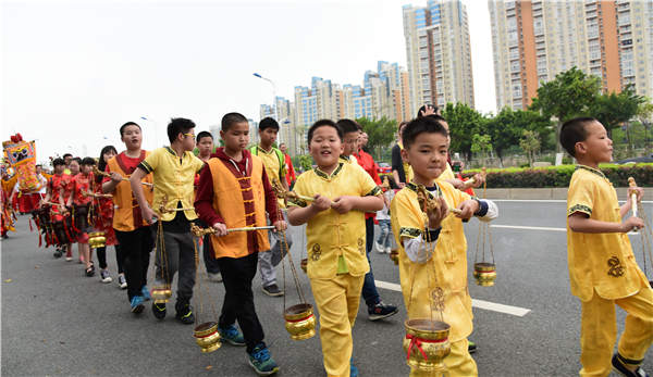 当日下午13:00点,泉州北石文兴宫举行了绕境巡安踩街活动,数千善信按礼仪规制排列整齐,走巡整个文兴胜境,沿途所到之处受到善信弟子们的热烈欢迎,处处张灯结彩、礼炮齐鸣,热闹非凡。