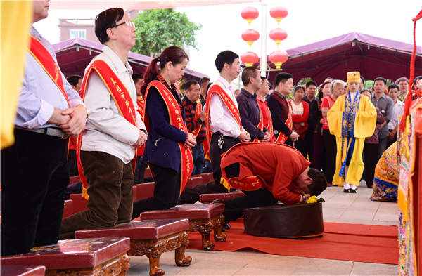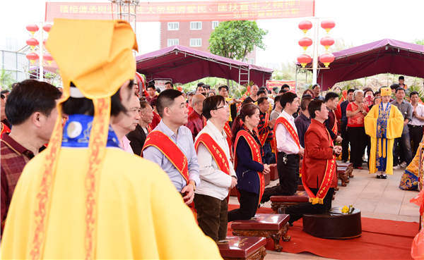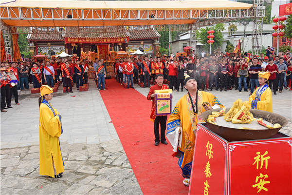 香会当天上午,来自泉州各县市40余座同祀庙宇的近2000名善信齐聚一堂,共同参加了由中华道教三清教派宗师、中华三清道教会理事长、三清玄妙观主持、三界集神坛高功许荣财派法大成主持的联合祝圣三献大典,大典分为十个部分,由演奏道乐为典礼开始,鸣炮撤班纳福为礼成。整个大典庄重神圣,仪式之气势雄伟,在场的每一位弟子善信都可以感受到保生大帝之神威浩荡,威严肃穆。
