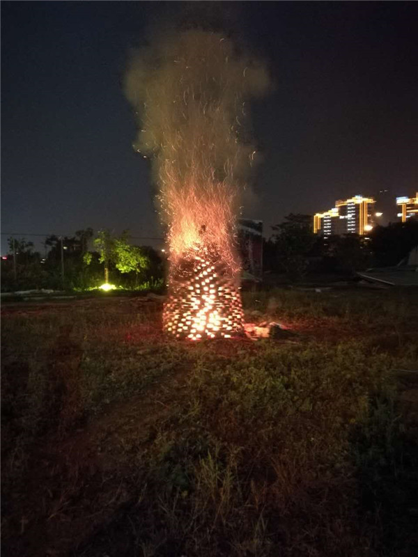 泉州文兴宫部分信众自发前往文兴宫举行“烧塔仔”、“博饼”等民俗活动
