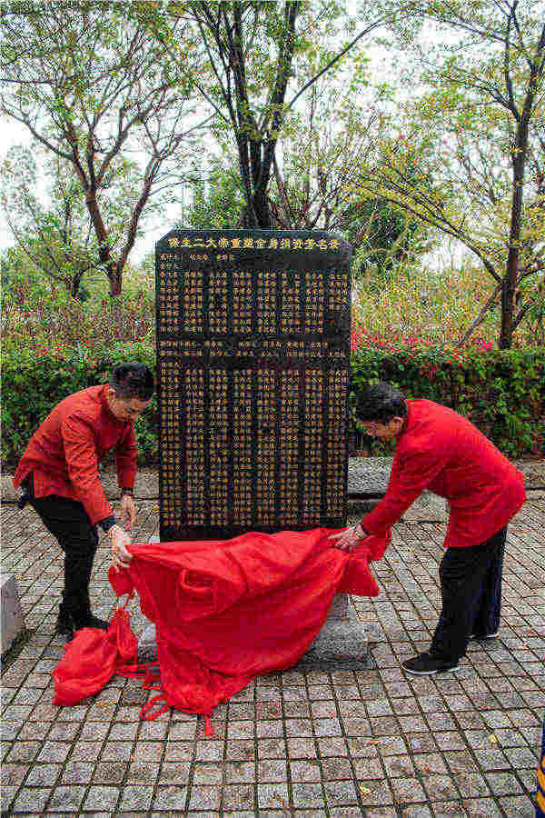 随后领众谢土为隘门捐资芳名碑、保生二大帝金身芳名碑举行揭碑仪式。
