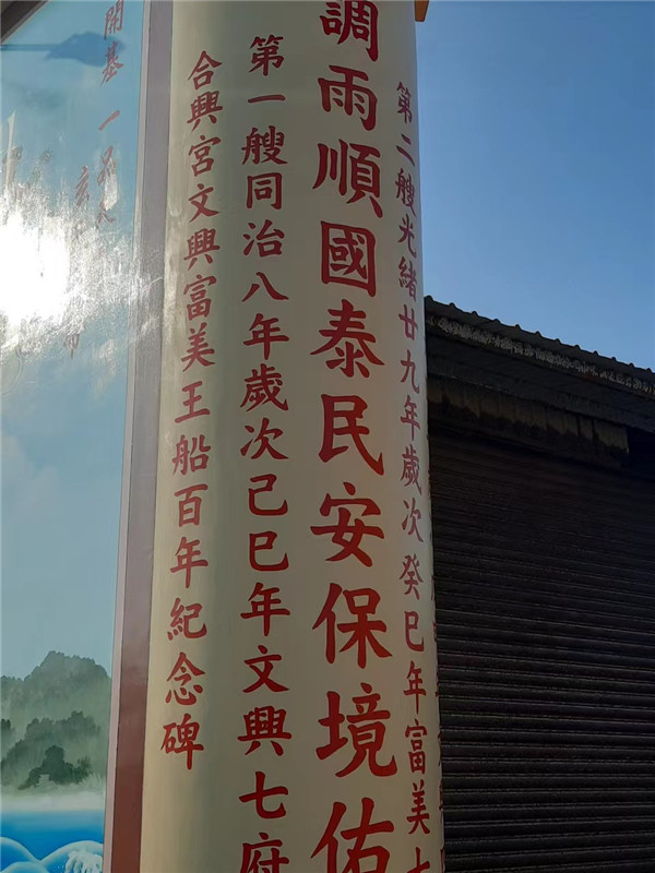 台湾省苗栗县后龙合兴宫清同治八年接到第一座“文兴七府王船”百年纪念碑