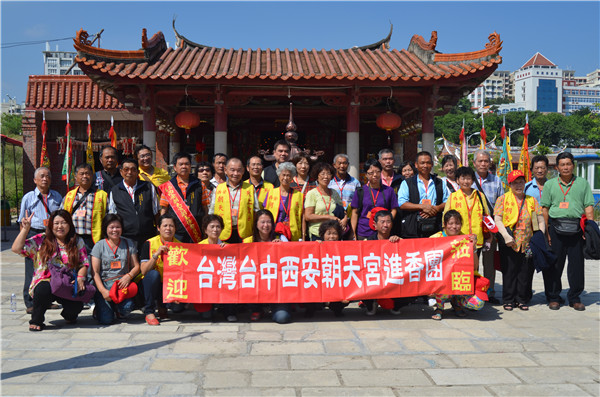 农历癸巳年八月初七,公历2013年9月11日中午,台湾台中青水区西安朝天宫进香团到文兴三王府谒祖进香。