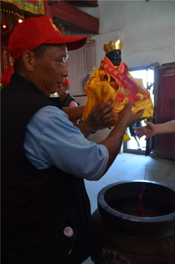 当天中午,进香团一行30余人从台湾台中远道而来,带着虔诚的心前来谒祖进香。团员们一一在文兴三王府内跪拜祈福,带着自己从台湾带来的愿望,从台湾带来的期待,当然也带着感恩的心。文兴三王府雷、萧、温三府千岁并及诸位神明保佑我海峡两岸广大善信阖家幸福、平安喜乐,广大善信无不感恩神明保佑。