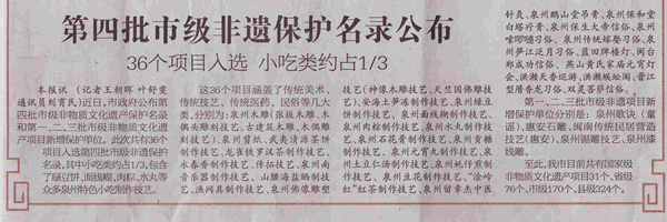 近日,市政府公布第四批市级非物质文化遗产保护名录和第一、二、三批市级非物质文化遗产项目新增保护单位。其中,“泉州保生大帝信仰”作为36项非遗项目之一被认定为泉州市级非物质文化遗产保护项目。