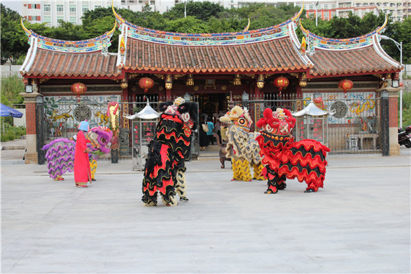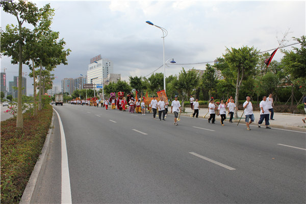 当天下午,泉州北石文兴宫董事会成员,文兴大鼓凉伞队伍早早于文兴三王府前等候迎接进香团的到来。16时许,进香团一行400余人浩浩荡荡,乘坐10余辆旅行大巴,从广东省远道而来。进香团于文兴三王府前一公里处开始徒步、整队,带着虔诚的心前来谒祖进香,队伍整齐,方块明确,团员们手持柱香,口中默念祈福话语,跟随队伍来到文兴三王府前。期间,文兴大鼓凉伞队表演了闽南地区传统舞蹈:大鼓凉伞,精彩的表演迎来了进香团成员的阵阵掌声。进香团则在广场上舞起了狮,高超的技术,以及带有传统文化艺术气息的表演,为今天的谒祖进香活动增色不少。进香团的每位成员都带着感恩的心,虔诚的心,到文兴三王府内跪拜祈福,愿文兴三王府雷、萧、温三府千岁及诸位神明保佑广大善信乡民阖家平安、全家幸福。愿海峡两岸广大弟子信女健康、平安、喜乐!