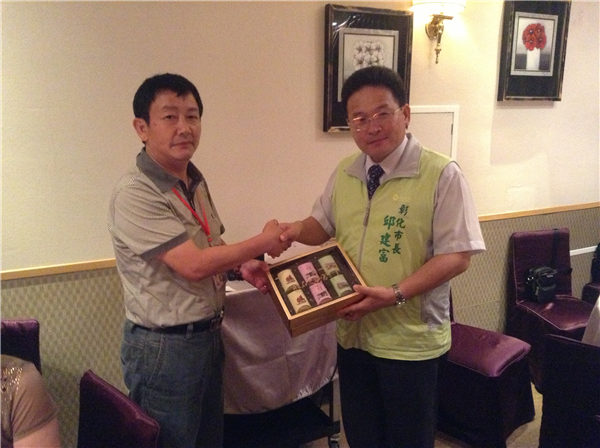 参访团到达彰化市后,受到了彰化市市长邱建富先生、彰化市市民代表会代表林深山先生的亲切接见,参访团成员向彰化市市长赠送了纪念品,并向市长提出,希望今后有机会能再到泉州走走看看,互相增进了解。而市长也在讲话中欢迎参访团的到来,他提到,宗教文化在台湾特别是彰化地区占有着及其重要的地位,台湾的几乎所有神灵、庙宇分灵均为先人从大陆传承至台,两岸宗教文化同宗同祖同根,不可分离。希望参访团成员今后能多到台湾走走看看,多与台湾的信友大德交流,增进了解,共同传承中华民族的优秀传统文化。