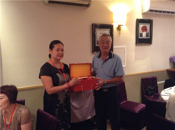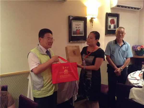 泉州市丰泽区民宗局局长李黎萌女士向彰化市市民代表会代表林深山赠送纪念品