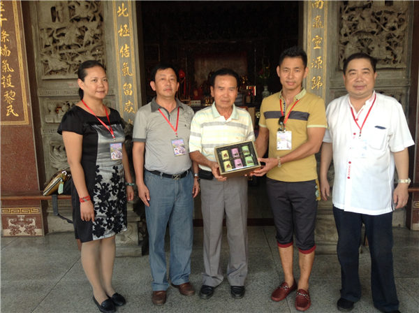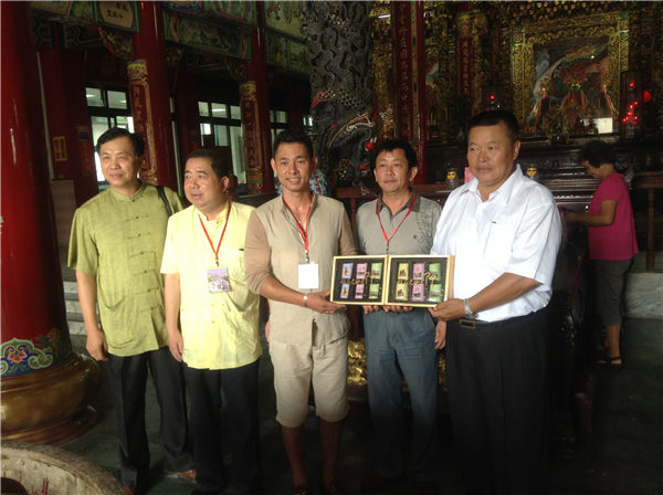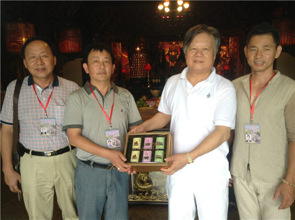 泉州北石文兴宫董事会主要成员向协兴坛负责人蔡添寿赠送纪念品