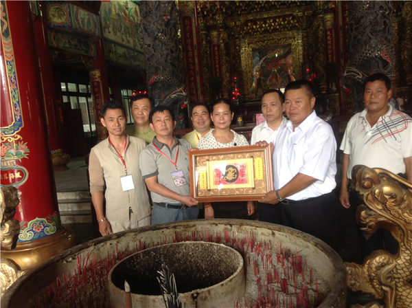 之后,参访团还来到彰化市永安宫、台中清水高美文兴宫、海滨里文兴宫及协兴坛。这四座庙宇都是我泉州文兴宫之分灵庙宇。早在明朝时,泉州敬献王爷神船遨游江海之习俗兴盛,我文兴宫信众用杉木建造七彩的王船,大小不一,有丈余,有二丈余,均按实际船只的结构而成,并将王爷神像,香炉、星旗旗牌,家具及禽畜等安放在船上,择一良时吉日欢迎入海,任其遨游巡狩。 彰化永安宫、台中清水高美文兴宫、海滨里文兴宫等庙宇的信众就是幸遇泉州文兴宫之王船载着神像,停泊此处,认为有远来的神明将庇佑地方发展,变迎回神像等物建宫庙奉祀,历经百年,香火鼎盛!据台湾当地信众传说,百年前在台湾海岸边见从海峡对岸泉州文兴宫巡狩而来之王船时,船上柱香依然点燃不灭,禽畜依然精神抖擞而不亡,可见神灵护佑之神奇,颇具传奇色彩。泉州北石文兴宫董事会负责人分别向四座庙宇的负责人赠送了从祖庙带来的纪念品,并邀请广大台湾信众有机会回泉州祖庙拜会参访。四座庙宇的负责人见泉州祖庙负责人远道而来,都非常的高兴和欣慰,亲切而热情的迎接了大家!协兴坛负责人蔡添寿说起30年前想回泉州祖庙谒祖进香的故事更是百感交集。那时大陆与台湾交通不便,他便远涉新加坡,再从新加坡托友人取得入境大陆资格后方千里迢迢回到泉州祖庙谒祖进香,保佑他风调雨顺,事业兴盛,合家平安。当泉州北石文兴宫董事会负责人和协兴坛负责人蔡添寿的母亲介绍到自己是从泉州祖庙而来时,患有老年痴呆的老太太竟流下了泪水,令人无限动容。泉州北石文兴宫董事会负责人同台湾信友们说到,这就是百年来的关系和纽带,也是两岸善信同根同祖的缘分,更是因共同的信仰而培养的几代的情感,我们一定将其传承,并发扬光大!将王爷信仰文化发扬光大,将泉台信仰文化交流发扬光大,更将两岸人民之深切感情发扬光大!结束参访时,清水文兴宫等泉州文兴宫分灵庙宇都约定,将选择合适的时机回泉州文兴宫祖庙谒祖进香。
