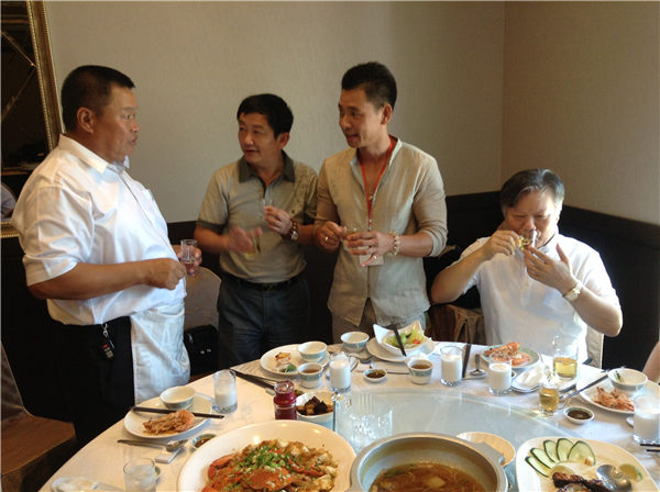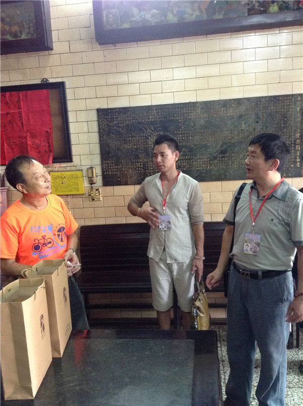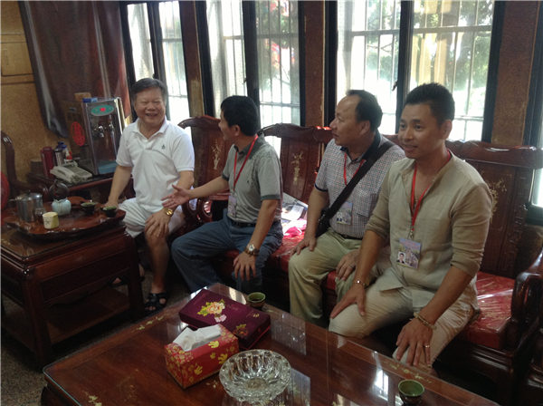 泉州北石文兴宫董事会主要成员与协兴坛负责人蔡添寿交谈